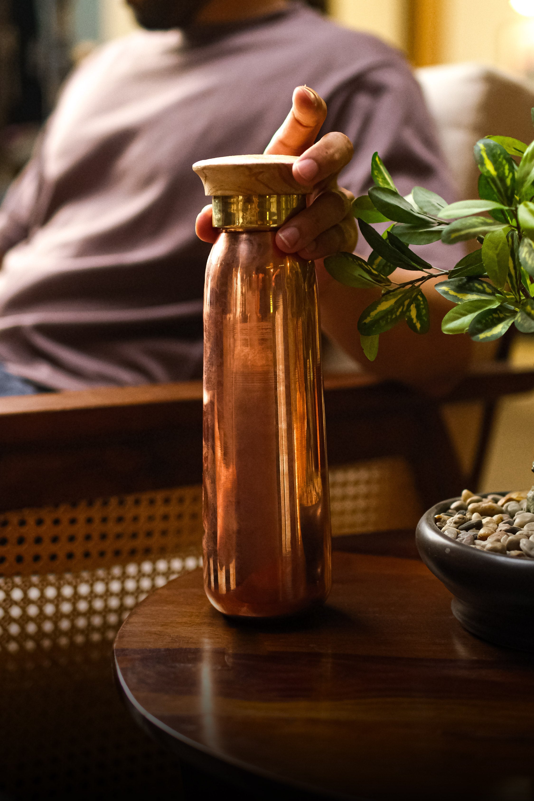 Copper is naturally purifying; it kills germs and neutralizes pollutants in water, so promoting a healthy and conscious choice for everyday hydration.