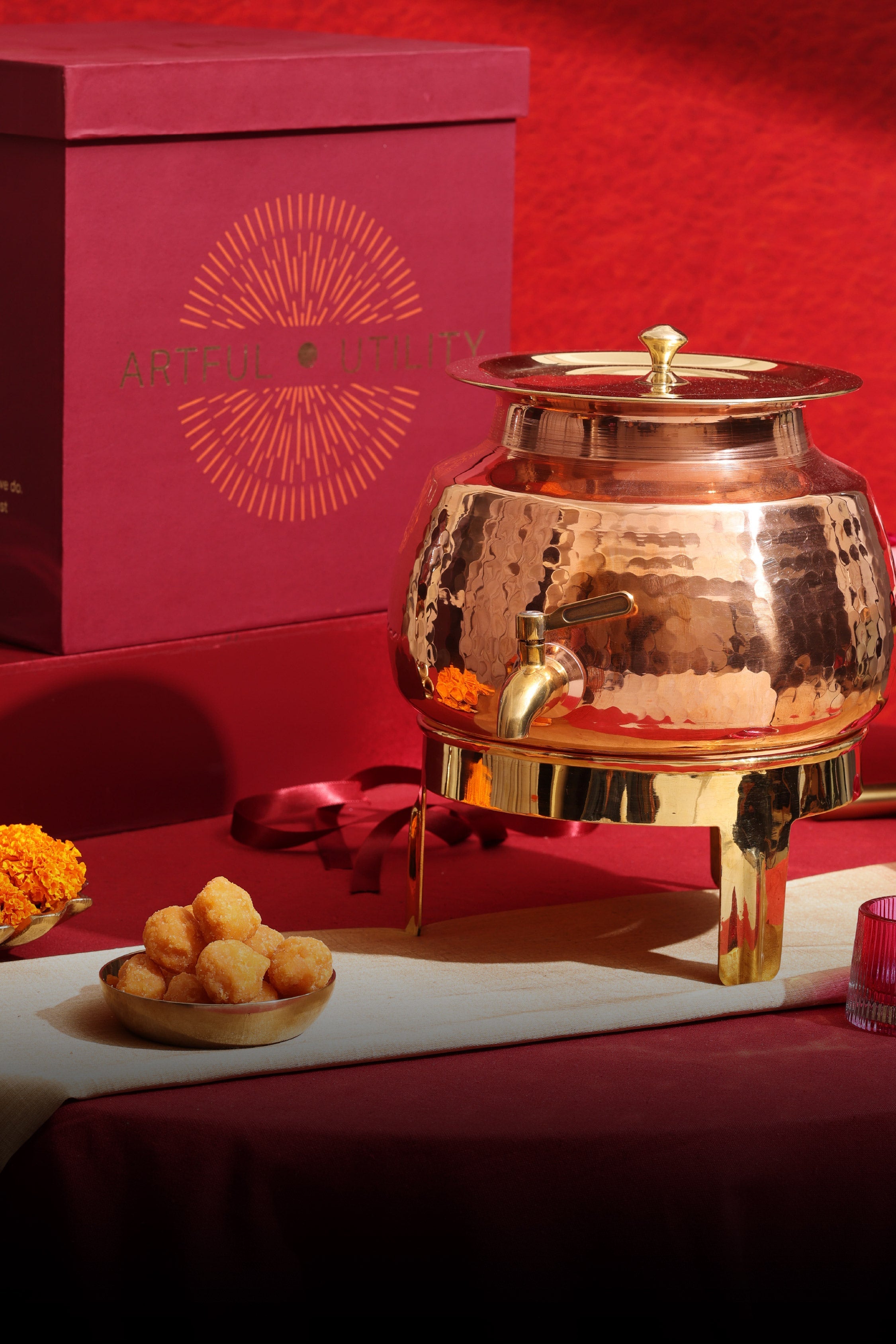 Designed to honour ancient wellness and modern convenience, P.TAL’s Copper Water Dispenser Set includes a 5L pure copper dispenser, tap, lid, and copper glass, curated to support your daily practice of drinking Tamra Jal the way Ayurveda recommends. The copper body naturally purifies, enriches, and balances water, while the included glass ensures you complete the ritual as it’s meant to be. Ideal for your kitchen, bedside, or workspace, this set is a beautiful union of form and function.