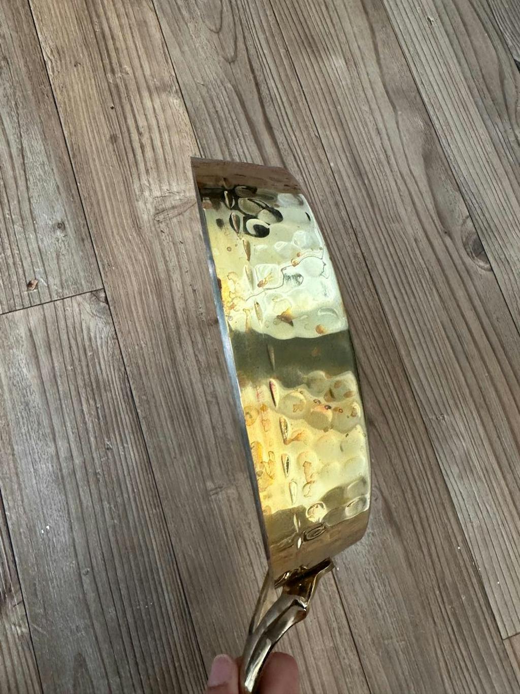 - Finish: A beautiful hammered finish with a rose gold look on the outside (handcrafted in pure brass) with a tin-coated and silver finish on the inside.