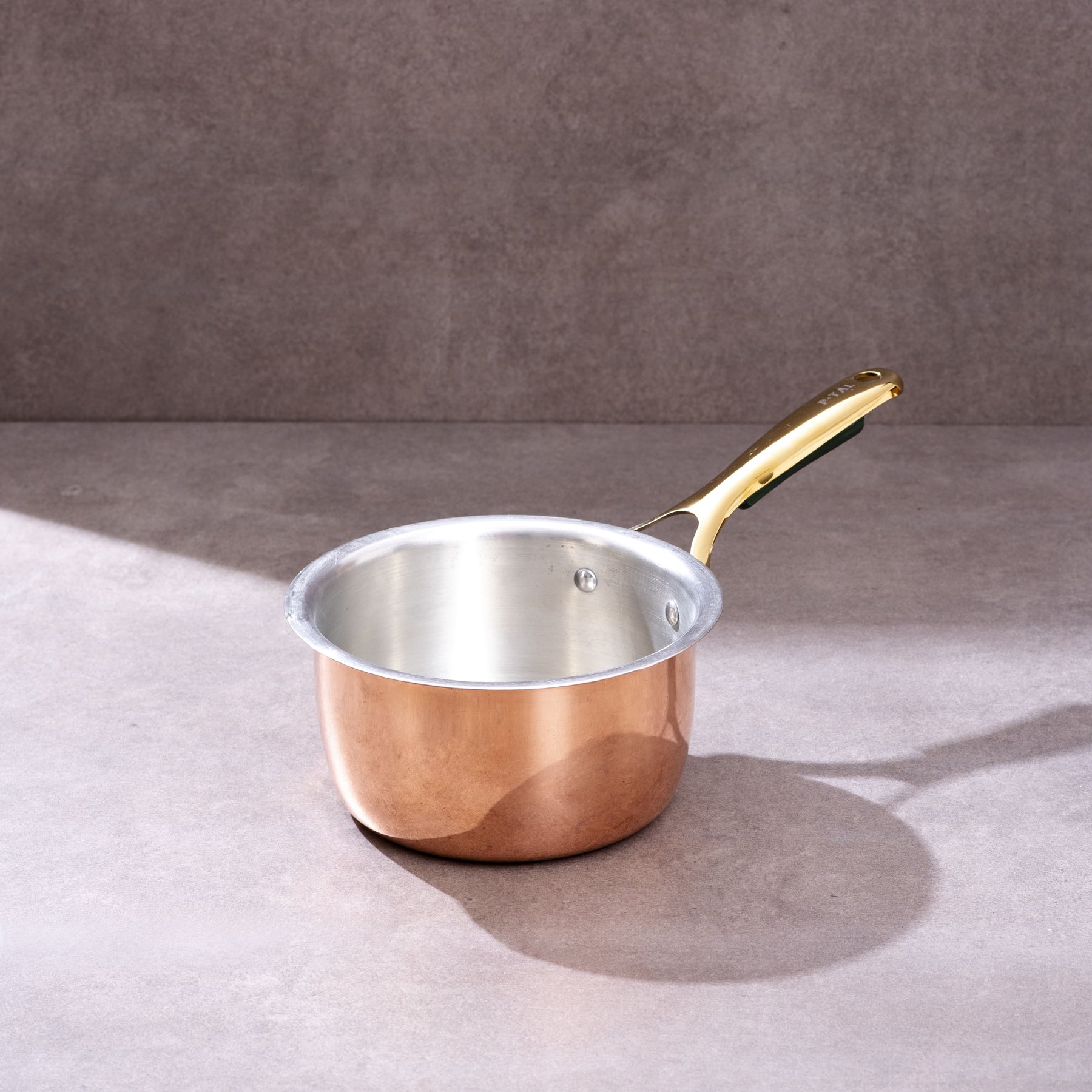 Handcrafted in solid copper and lined with food-safe tin, this saucepan is designed for smooth sauces, glazes, reductions, and everyday cooking that deserves attention to detail. It heats up quickly, spreads warmth evenly, and gives you complete control over every stir and simmer.