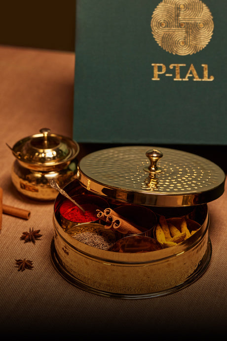 Brass Masala Daani / Spice Box in Gift Box P-TAL: Traditional Kitchenware and Drinkware