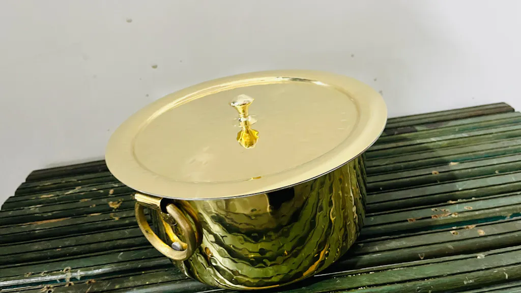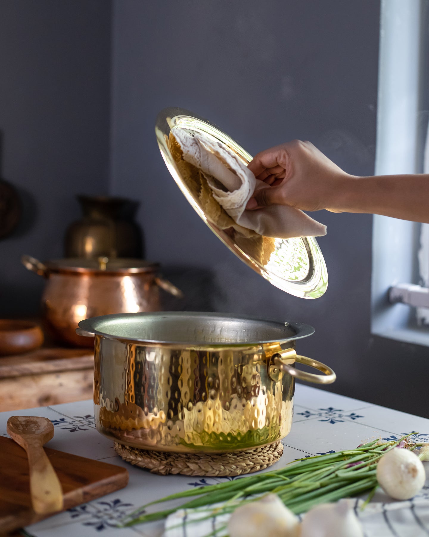 Discover the custom of boiling milk with a brass patila/milk topia meant to easily prevent spills and boil-overs. Rich in history and meticulously crafted, this patila guarantees mild, consistent heating that protects the natural flavor and nutrients of the milk. Combining time-tested workmanship with modern convenience, it transforms a basic kitchen activity into a ritual of warmth and wellness from durable and well-considered design.