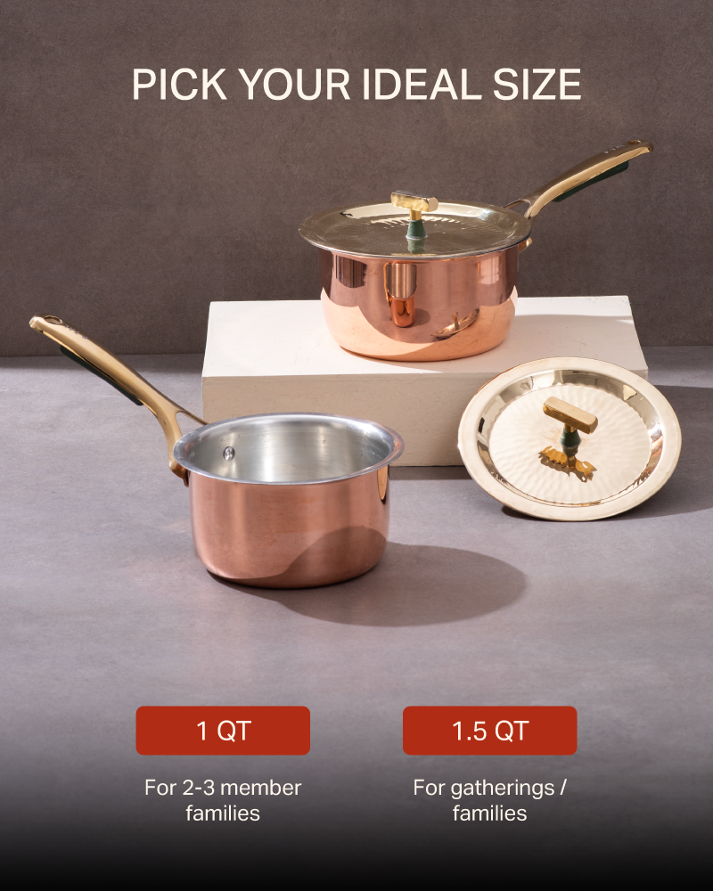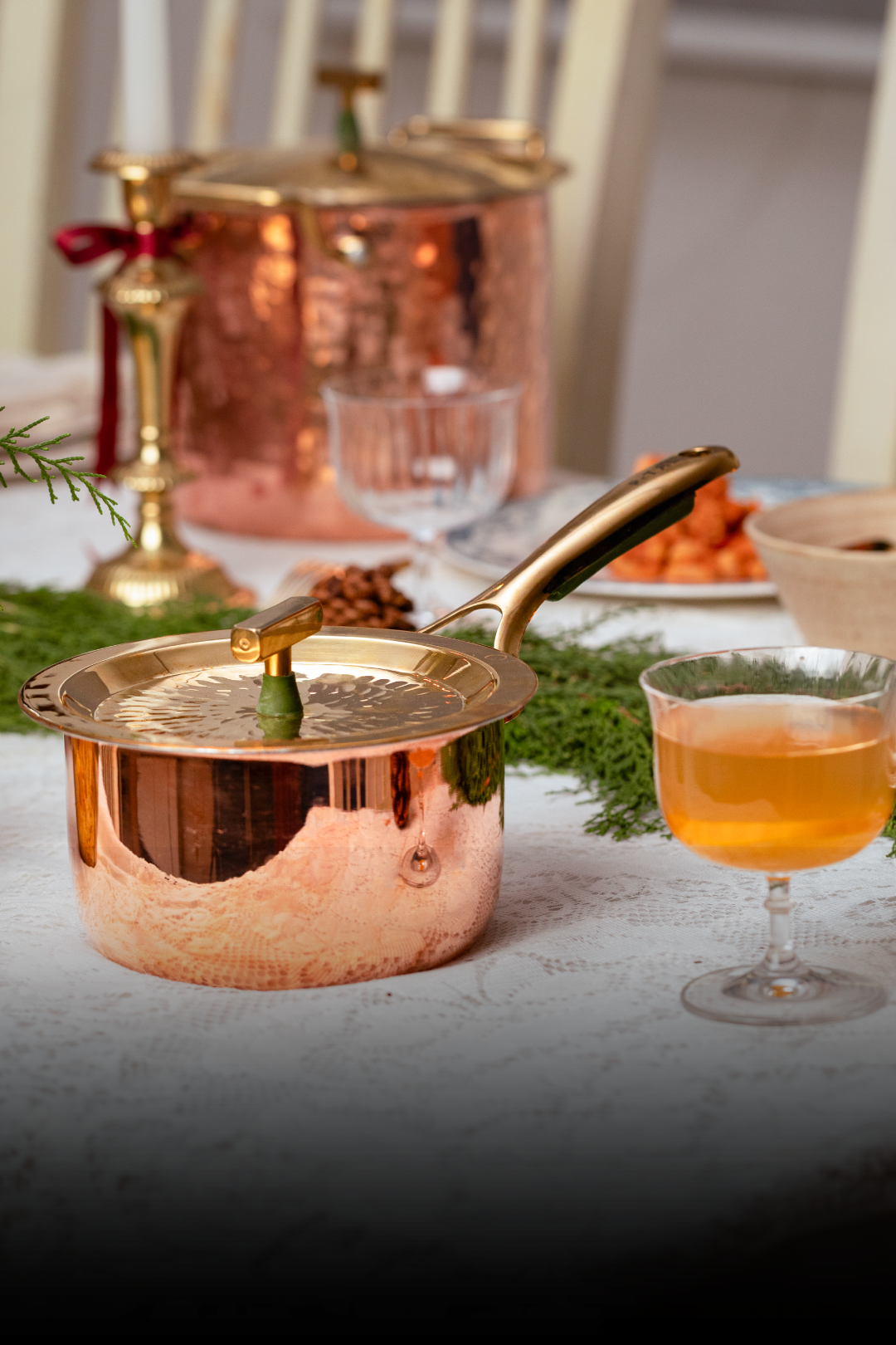 Handcrafted in solid copper and lined with food-safe tin, this saucepan is designed for smooth sauces, glazes, reductions, and everyday cooking that deserves attention to detail. It heats up quickly, spreads warmth evenly, and gives you complete control over every stir and simmer.
