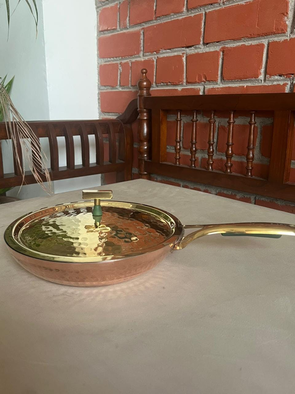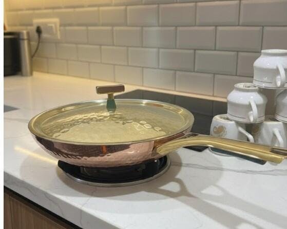 Each pan is handcrafted in copper by artisans in India. You feel the quality the moment you hold it. It heats evenly, cooks gently, and becomes a natural part of your kitchen rhythm.