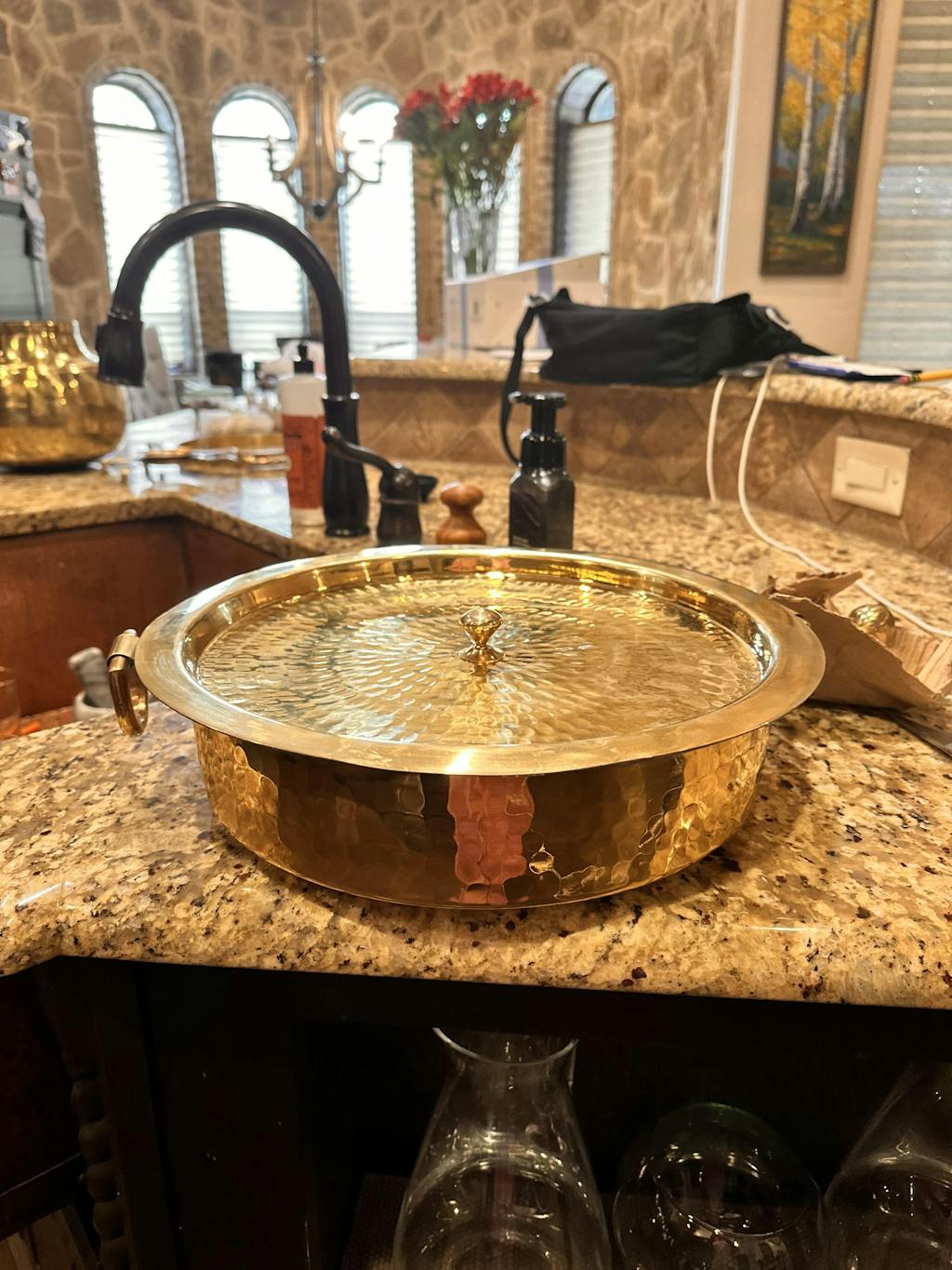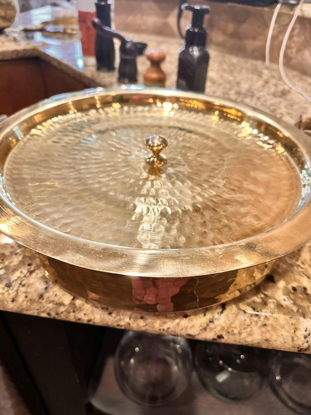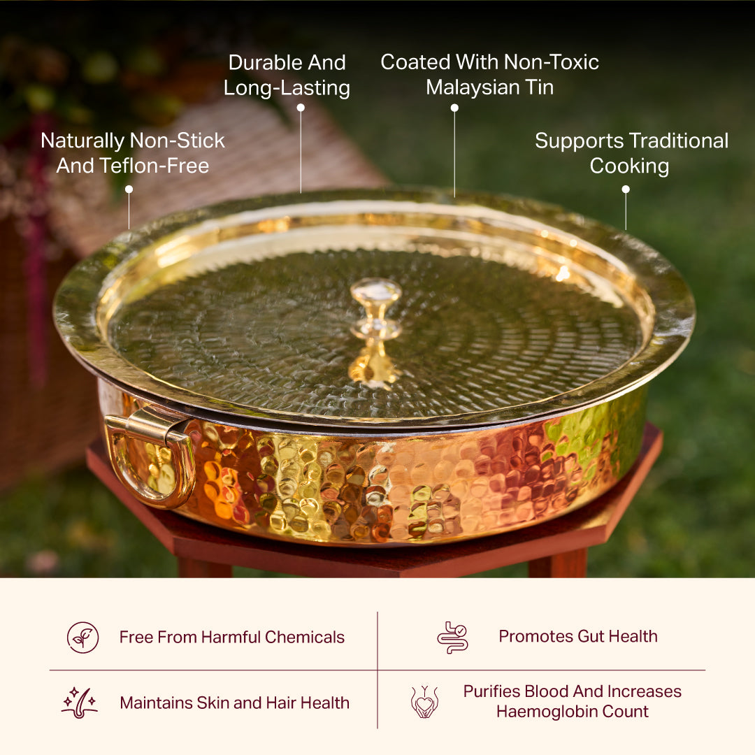 Cook with a traditional brass Braiser and rediscover the joy of slow, nourishing meals. Rooted in age-old wisdom and designed with care, the Braiser’s deep form and even heat flow make it perfect for baking, roasting, or simmering flavourful one-pot dishes. Strong, elegant, and naturally non-stick, it turns everyday cooking into lasting moments of wellness and warmth.