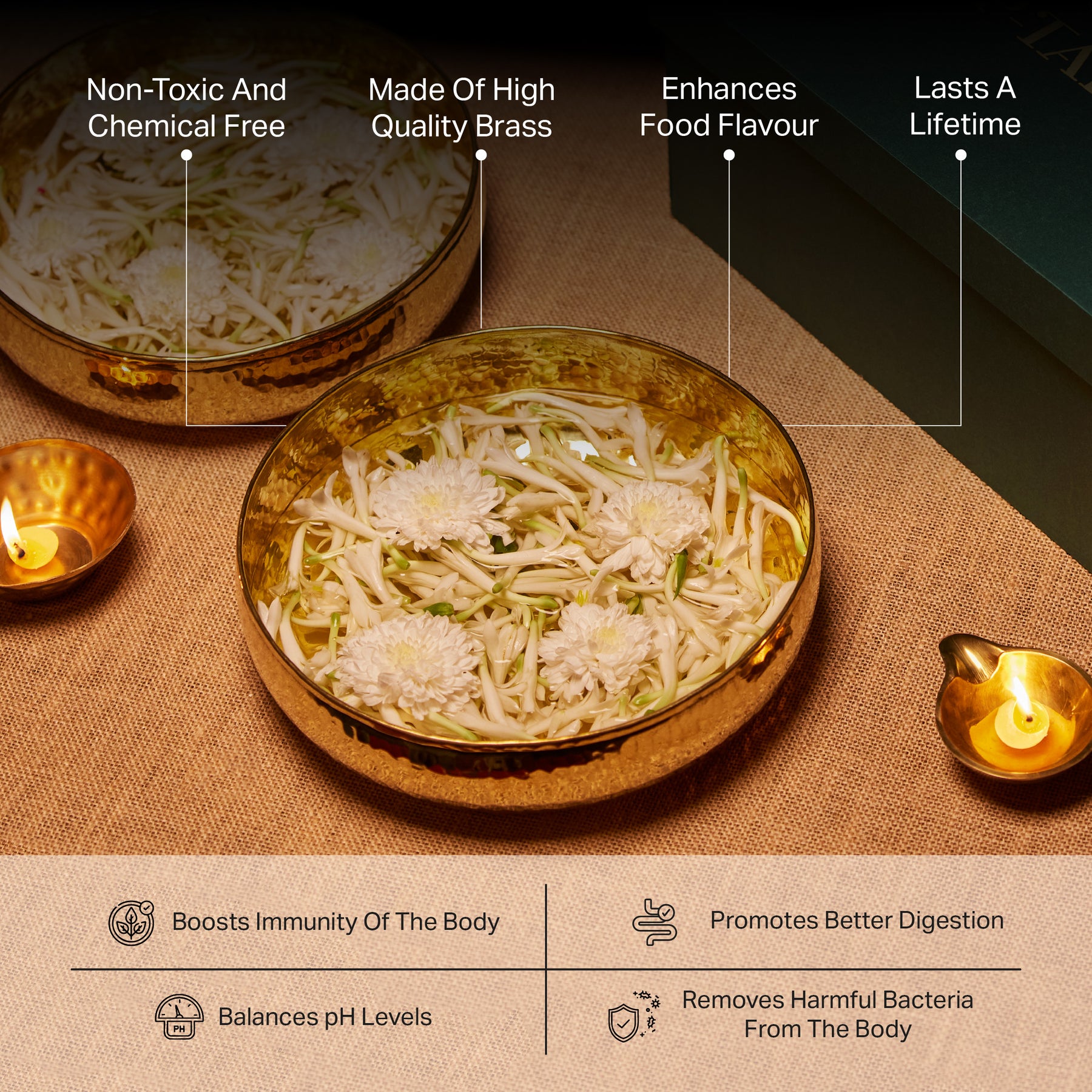 Lovingly crafted from 100% pure brass, this masala box is free from toxins and synthetic coatings, nurturing your body with every meal and supporting digestive health the way nature intended.