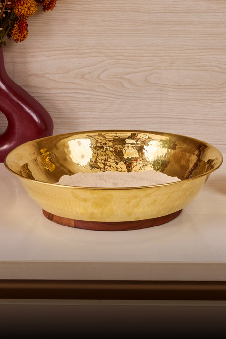 Bring tradition to your daily routine with this handcrafted Brass High Hipped Platter/ Paraat—designed for comfortable, efficient dough kneading. Its wide, flat base and smooth tin-coated surface allow you to work with ease, while the warm golden hue and hammered detailing reflect a legacy that goes beyond the kitchen. Practical, beautiful, and rooted in Indian food heritage, this is a piece that nourishes through both purpose and presence.