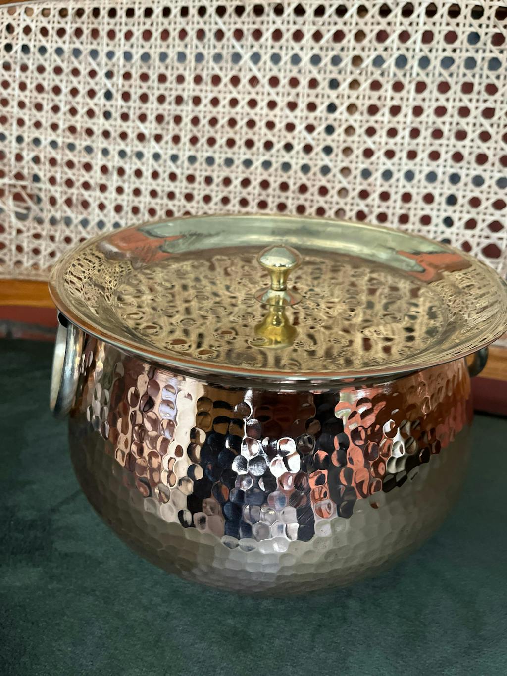 - Finish: A beautiful hammered finish with a rose gold look on the outside (handcrafted in pure brass) with a tin-coated and silver finish on the inside.