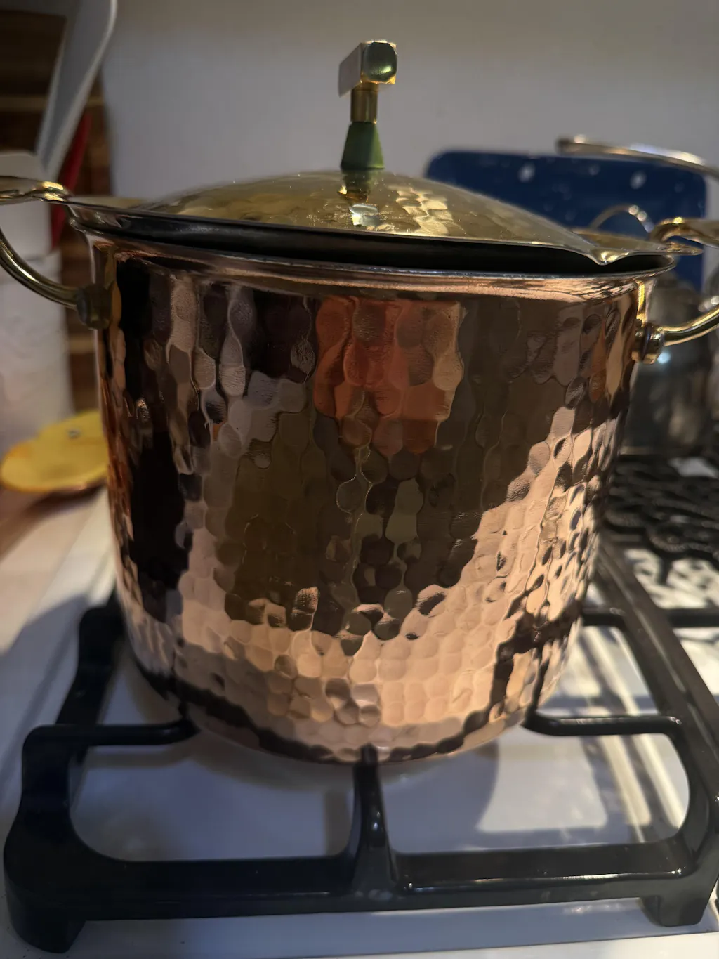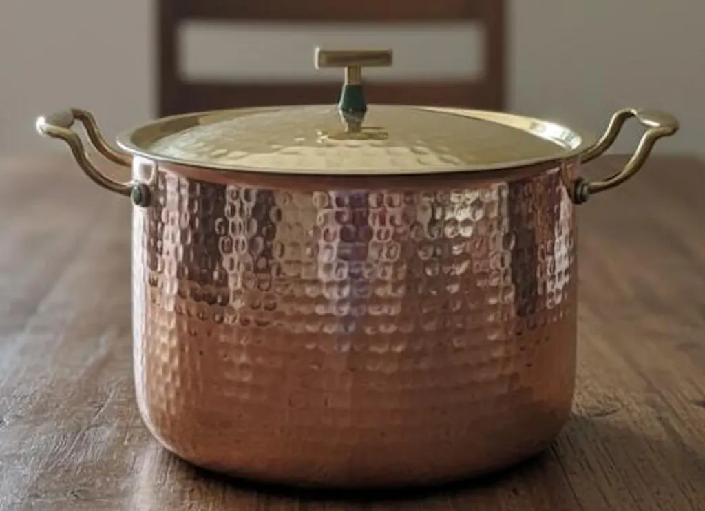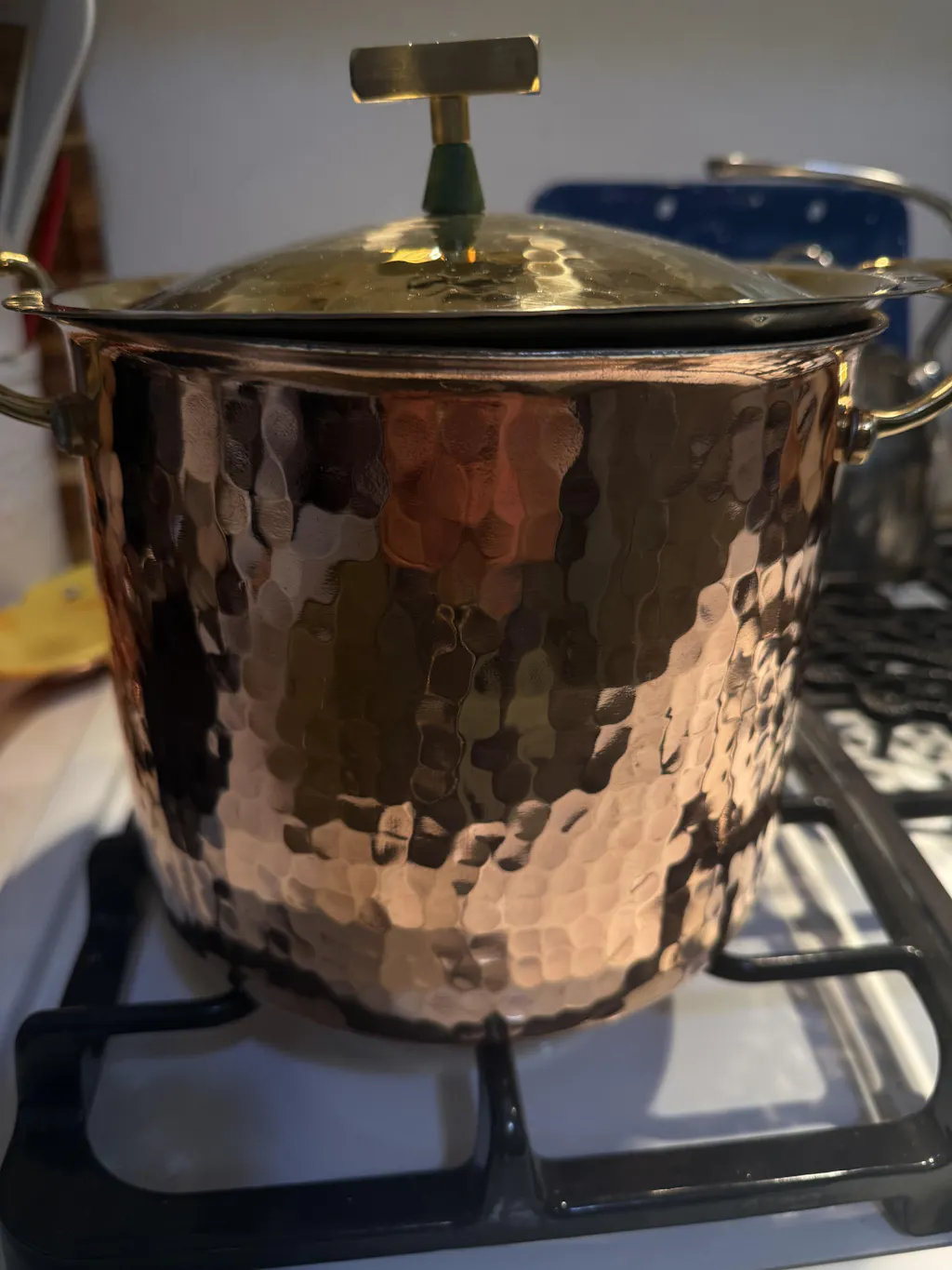Handcrafted in solid copper and lined with food-safe tin, this stock pot is made for slow, even cooking that brings out deeper flavor with every simmer. Designed for soups, broths, stews, and hearty one-pot meals, it spreads heat evenly from base to rim so every ingredient cooks beautifully.